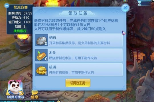 新版帮战上线后,很多小伙伴表示不怎么会玩。慕子白今天就给大家讲解下新版帮战的玩法。 首先,新版帮战的开启时间是每周二晚上20:30分,对战双方帮派将分为进攻方和防守方。大家记得提前准备,准时进场哦~因为帮战开始后再进场,会扣除一半的行动力。 帮战过程中,主动和敌人切磋,切磋战斗中战败,购买军需道具,领取军需任务都需要扣除行动力,行动力为0时将被清出场景。虽然仍可以进场观战,替本帮玩家加油,可惜却无法再获得任何奖励。 队伍人数越多时,切磋战败扣除的行动力将会越少,所以大家还是尽量在帮战中组好队伍吧。有些在进入新版帮战地图后可能会觉得地图很熟悉,没错!就是涿鹿战场的地图,但是地图中间多了攻城车和城门。玩法上新帮战中除了可以像旧帮战一样点击敌人进行切磋以外,进攻方还可以驱动攻城车攻打防守方的城门降低城门耐久,防守方则需要修补城门,防住进攻方的炮火轰炸。 由此可见,新版帮战中低等级低战力的小伙伴们再也不是除了到处跑找地方躲起来之外无事可做了。那么,到底该做什么? 如果你是进攻方,那你要驱动攻城车,用爆炸弹轰炸防守方的城门。 驱动攻城车需要消耗1个爆炸弹,爆炸弹有两个来源: (1)战场中的军火匠师替进攻方服务时,每3分钟会自动生产1个爆炸弹; (2)进攻方则组成3人及以上队伍在己方军需官处领取和完成军需任务来获取对应的材料制作爆炸弹。 如果你是防守方,那你要在攻方用爆炸弹把你城门炸的千疮百孔之前赶紧修复起来。 修补城门需要消耗1个修城材料,修城材料有两个来源: (1)战场中的修城匠师替防守方服务时,每3分钟会自动生产1个修城材料; (2)防守方则组成3人及以上队伍在己方军需官处领取和完成军需任务来获取对应的材料制作修城材料。 以进攻方军需任务为例,守方任务也是类似的,一共有3种任务 第一种任务要求你到指定的地点开采硝石,到达指定地点进行短暂的读条后,会出现一只调皮的小精灵将你的硝石抢走,而你需要完成小游戏挑战才能完成任务。 小游戏开始时会把2颗硝石藏在5个盒子中的其中2个内,多次调换盒子位置后,需要猜中2颗硝石的位置。队伍里有3名成员猜中时,任务就算完成。 第二种任务要求你到指定的地点伐木取材,到达指定地点进行短暂的读条后,有可能直接完成任务或者被愤怒的小鸟袭击,战斗胜利后完成任务,此战难度不大。 第三种任务要求你到指定的地点开采硫磺矿,到达指定地点后进入小游戏,该游戏需要用一笔不间断的连线将图案连接成任务要求的形状。队伍中有3名成员完成连线时,任务完成。 值得一提的是,领取任务需要扣除队伍成员40点行动力,身上有军需任务时,和敌人切磋战败时军需任务将消失。所以低等级玩家在做任务时不要忘了躲避敌人的切磋哦。 军火匠师、修城匠师被敌方战胜后,将不再替己方生产爆炸弹、修城材料,但是可以重新战胜他使其继续替己方生产爆炸弹、修城材料。3人及以上队伍才能挑战匠师,有一定的战斗难度。 说到这里,肯定有小伙伴产生疑问:我们那么费心费力攻打城门又修复城门,到底有什么用呢? 首先,防守方的城门有3个形态: (1)初始形态为坚固的城门,拥有1200点耐久度,该形态下,城外的玩家将看不清城里的情况,而城里的玩家可以看清城外的情况,且进攻方成员在城内切磋失败时,将扣除额外20%行动力; (2)耐久度降低至780时,城门将变成第二形态:残破的城门,该形态下将不会再出现迷雾,但进攻方成员在城内战斗失利时,仍会扣除额外20%行动力; (3)耐久度降低至360时,城门将变成第三形态:快塌的城门,此时城门将不会对攻守双方产生影响。守方需要抓紧时间修补城门,否则耐久为0时,城门将彻底坍塌。 可见,城门的形态对于帮战的胜负导向可是有至关重要的影响呢! 最后,新版帮战是如何判定胜负的呢? 帮战期间有一方无任何成员在战场,则对方胜出。若21:30帮战结束时双方都有成员在场,则根据双方剩余在场人数和城门剩余耐久综合计算得分,得分较高的一方胜出。 肯定有不耐烦的小伙伴表示:那么多字看得我都头大了!有没有简单暴力点的技巧,快告诉我技巧! 有的有的!被吓到的慕子白赶紧拿扇子架在策划脖子上问出了以下技巧: 1.攻方:由于当城门耐久度较高时,城外的玩家是无法看到城门内的情况的,贸然进城容易遭到敌方成员的切磋,且此时战斗失败会扣除额外20%行动力。 建议实力强劲的队伍先进城,看清城内情况后再将情报回报给帮里的其他队伍。 2.守方:可以通过船夫传送到攻方腹地,来逃避攻方的追击或者深入敌方腹地和敌方队伍进行切磋。 3.守方:城门耐久度较高时,攻方成员在城内战败会扣除额外行动力,所以注意维持城门耐久度。遇到实力相当的帮派时最好守株待兔,等敌方进城后和其切磋,战胜后敌方将扣除更多行动力。 4.城门、攻城车附近一般是pk高发区,驱动攻城车、修补城门时很容易被敌方队伍点,低等级的玩家建议在高等级玩家的保护下进行此操作。 5.在军需官处购买和使用道具,比如治疗石、召雷石等,都会对自己帮派的战斗有所帮助。其他的道具也各有功效。 6.高等级的队伍尽量将敌方队伍清出场,让己方小号能更安稳地留在场内和做任务。 7.帮战期间,多注意帮派频道的传闻,及时做出应对。比如匠师被占领时会有传闻,城门耐久度达到一定程度时也会有传闻。 