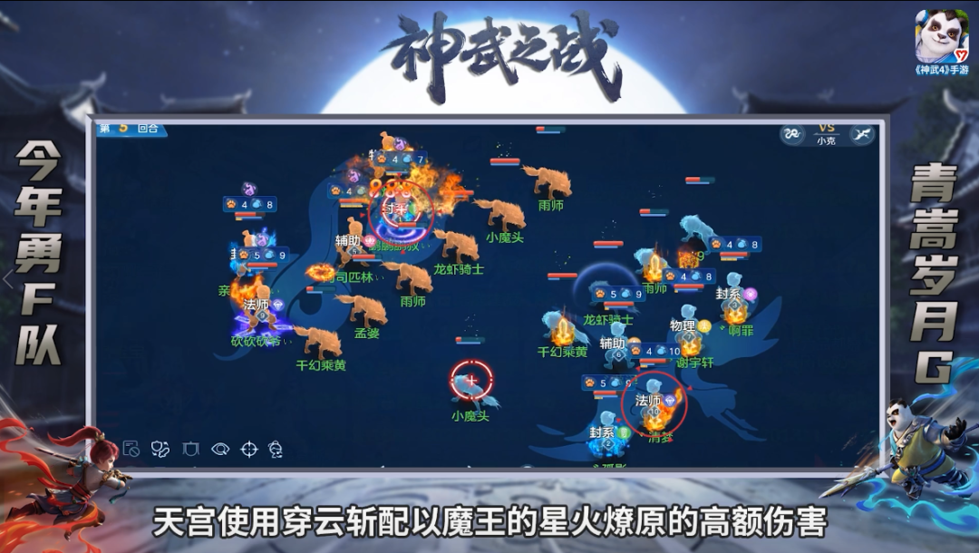 各位玩家大家好,我是小昕,欢迎收看本期节目,在69届神武之战上诞生了无数的名场面,下面就请大家跟随小昕,一起来看看比赛中的精彩操作吧! Top5.甲组8进4 飞花A队vs 笑傲B队 出其不意击杀方寸,占据先机取得优势 第20回合,迟迟打不开突破口的飞花A队找准机会选择击杀笑傲B队方寸。飞花A队曜华队己方龙宫使用青砖,万兽疯狂连击与龙宫烽火连城的组合拳成功击倒笑傲B队方寸,完成了对辅助的首杀。 依靠这次成功的点杀,随后飞花A队不断集火压制敌方方寸,依靠队伍的运筹帷幄,优势越滚越大。最终取得比赛的胜利。由此可见,在对局中期势均力敌时,击杀敌方一速是打开突破口的很好方式,值得玩家借鉴。 Top4.甲组8进4 今年勇A队vs 阳春A队 配合默契拿到双杀,阳春双封同时倒地 第19回合,上回合末不灭起身的曜华遭到今年勇A队天宫的逆转阴阳集火,尽管普陀触发被动保护导致己方曜华残血存活,但是由于队伍行动力不足,无法恢复曜华的血量,最终被今年勇A队宠物秒死。 同时今年勇A队转而集火敌方盘丝来扩大自己的优势,蚩尤配合龙宫的烽火连城成功使阳春B队盘丝中毒倒地。尽管阳春B队宠物出齐,但是双封倒地的巨大劣势,最终输掉了比赛。 Top3.甲组4进2 江山A队 vs 飞花A队 群体清心愤怒不足,你来我往互有搏杀 第9回合,飞花A队选择集火敌方曜华,此时己方龙宫处于封印状态,满怒佛门处于疯狂状态处于必开群体清心的局面,不料被江山A队曜华和盘丝同时使用绵里藏针针对,使飞花A队龙宫站街,但是由于万兽的高额伤害配合宠物,还是将江山A队曜华集火倒地。 同时江山A队不甘示弱,选择集火飞花A队曜华,尽管察觉危险的飞花A队后手给己方曜华卡血环,但是江山A队天宫穿云斩配合武侯的复活连城以及孩子火云决的两次法爆高额伤害,回合末成功带走曜华。 Top2.乙组16进8 花好H队vs 花好G队 耐点佛门丝血存活,错误判断优势尽失 第17回合,在花好G队两人倒地的劣势下,花好H队大胆选择集火佛门,佛门群体清心保证出手,普陀给到卸甲,由于花好H队两只输出宠物鬼混倒地,最终伤害不足导致花好G队佛门丝血存活。 同时花好G队普陀高速复活方寸,天宫宠物拉起自己,集火清掉敌方两只宠物。回合末花好H队只剩一只残血乘黄,把之前积累的优势暂时拱手相让,场上局势瞬息万变。 Top1.乙组 8进4 青嵩岁月G队 VS 今年勇F队 普陀子午精准预判,伤害爆炸依旧击杀 第5回合,青嵩G队率先对今年勇F队方寸进行集火。青嵩G队佛门开启群体清心保证己方所有单位输出,天宫使用穿云斩配以魔王的星火燎原的高额伤害,以及前排宠物的爆炸输出,扛着子午成功击杀今年勇F队方寸,处于魔焰滔天的今年勇F队方寸需要依靠大量的药品才能恢复健康血量。尽管今年勇F队预判到敌方的点杀,但是由于方寸自身的抗性不足,导致防守失败。 以上就是本期节目的全部内容了,各位看官可以在评论中选出你心目中的最秀操作。 扫一扫以下《幻唐志手游》二维码,根据自己的手机(安卓版、IOS版),下载对应的幻唐志手游客户端!赶紧邀请小伙伴,一起畅玩游戏! [编辑:ssc]