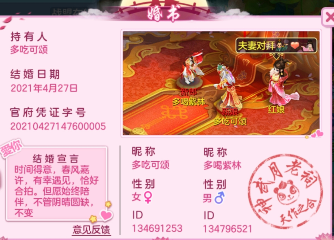 《神武4》手游玩家爱情故事采访,狗粮也许会迟到,但是它一定会到!一起来看看这对游戏CP有多过分,为什么队伍五个人能直接被他们秀走了三个人?! 遇见他是突如其来的好运、再简单不过的欢喜。 游戏的结拜姐妹将素不相识的我俩拉进队伍,安排了一场相亲,这是我俩故事的开篇。 简单了解后,他说:我会一直陪着你,只要你在。 直接将我拉上他的坐骑跑遍所有的地图,共游神武天下,他这恰到好处的温柔和真挚的内心,给了我猝不及防的心动。 初识时天青带我跑地图 相处之后又发现我俩三观相合,兴味相投,结婚也就成了缘分到了的必然。 我们特意将友好度加到1314之后去红娘那里申请结婚,把夫妻称谓改成小温情与小柔情。 结婚时的1314友好度 后来又改成江海天与明月心,这是我两都喜欢的仪式和浪漫。 婚书内容 我是刚接触神武的佛系玩家,不刷装备也不洗宝宝。 他上我号一通收拾换了装备,我只上了七段宝石,但属性全面碾压九段的法系好友。 之前洗出了变异宝宝,不会打书,直接上护符,结婚后是他帮我挨个打书、换上护符。 我不喜欢竞技,每天都是他上号帮我打排名赚积分,因为忙碌不能上号,也是他主动为我清掉所有任务。 包括安宁祥和的521完美家园的建造和维护,都是消耗的他的时间与精力。 结婚后我们永远是二人组队状态,哪怕是单人任务,也是暂离后又归队,不忍分开片刻。 连体状态 闲来无事共骑雪狰在家园挂机,听他为我唱歌(他的声音真好听,清朗又温柔)。 他为我作词作曲《天命》,歌词:能不能牵住你的手,让时间为爱停留,如果我们在一起,我会给你最终的守候。 天青的手写版天命 每天为我而唱,这是彼此的默契和承诺。 临睡前互道晚安,在二人队伍、二人一坐骑的状态下后台,醒来第一件事亦是上游戏互道早安,迅速组队共坐骑,开始黏在一起的又一天。 甜蜜互动也是每天的必修课,曾经在队伍里秀恩爱撒狗粮,直接气跑三个人,剩下我俩开怀大笑。 曾经我俩都被禁言,但依然在帮派通过互动的方式把帮友秀哭,所谓走在神武流行的前沿。 双双禁言还秀恩爱 这是他给我带来的彻底改变,从沉闷的拒绝互动,到不管何时都能坦然张开双手拥抱他。 带我吃鸡 他的性格磊落飒爽,我则是沉默寡言,但尽管我无言,他也完全可以感知到我的意志和需索所在。 我们之间很纯粹,不掺杂丝毫利益,更不会执着于计较付出多少或得到多少。 天青的手写版一个月纪念文 而且有达成共识的清晰界限,不可动摇的底线,我认为这是神武处cp的最好打开方式。 天青的表白 神武表白他:遇见你,是最美好的意外,陪伴你,是最坚定的蔓延。 看完两位少侠的故事,无忧觉得被帮派禁言是有一定原因的,请问现在还流行CP吗?CPDD啊! 扫一扫以下《幻唐志手游》二维码,根据自己的手机(安卓版、IOS版),下载对应的幻唐志手游客户端!赶紧邀请小伙伴,一起畅玩游戏! [编辑:ssc]