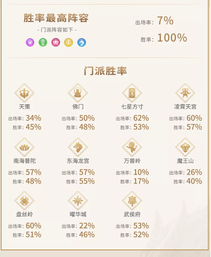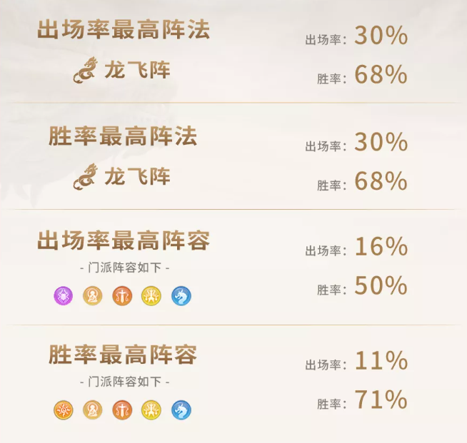 《神武4》手游全国争霸赛数据:胜率最高龙飞阵?