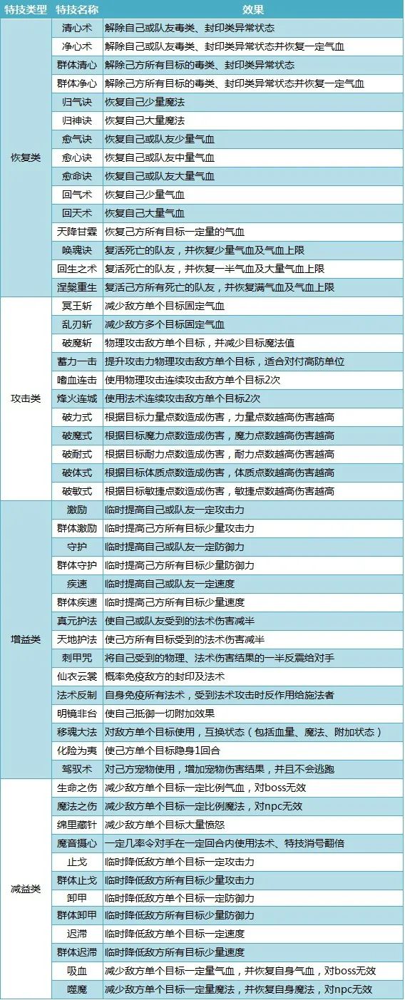 《神武4》手游装备的特技与特效,对实力的提升非常有帮助,选择合适的特效特技装,能更好助力少侠游历三界。无忧也为各位少侠准备了一份装备特技特效介绍攻略,接下来就与无忧一起来看看吧~ Part 1 特技与特效 基本介绍 特技:可以根据字面意思将特技简单理解为特殊技能。在游戏中,特技是有别于门派技能的另一类技能,它需要玩家消一定愤怒值主动施放。 特效:倾向于效果,能够直接生效体现在人物属性上或在达到某些条件时能够自动触发给玩家带来一些收益。 产出途径 在对打造出的装备进行鉴定时,有概率使装备上出现特技、特效;每件装备上最多有1个特技、2个特效,二者可以共存,也就是说同一件装备上最多能够存在2个特效+1个特技,也就是俗称的三红装备。 用途及使用 特技:作为一类主动释放型技能,它能够在被封印了普通攻击和法术的情况下使用,本质上是多了一种出手方式,让少侠在战斗中更加灵活,所有特技的释放都需要占用一次出手机会,同时消耗愤怒。 特效:作为一类被动类特殊效果,包含人物面板上的提升,封印、躲避概率,或是达到特定的条件即可触发等,本质是给少侠带来更大的正面收益。 注:愤怒是通过受到敌方攻击而损失血量、魔法或被敌方封印成功增加 特技特效类型 特技根据效果,能够分成四大类:恢复类、攻击类、增益类、减益类。所有特技均可在任意部位的装备出现。 特效根据出现在装备部位的不同,分成两大类:部位专属特效、通用特效,其中部位专属特效根据人物共6个部位的装备自然可以分成六个小类。 Part 2 具体特技类型与效果 Part 3 具体特效类型与效果 Part 4 门派特技与特效搭配 种类如此之多看的眼花缭乱,那么具体到每个门派,该带哪些特技,每个部位对特技的优先选择又是怎样的? 物理输出门派 天策、凌霄天宫、万兽岭特技与特效搭配 法系输出门派 东海龙宫、魔王山、武侯符特技与特效搭配 封系门派 七星方寸、盘丝岭、曜华城特技与特效搭配 辅助门派 佛门、南海普陀特技与特效搭配 装备特技与特效的搭配多种多样,各位少侠可以多开发它们的价值,比如卸甲、冥王斩特精准、躲避特效等。仁者见仁,智者见智,以上就是本期装备特技特效介绍的攻略内容了。 扫一扫以下《幻唐志手游》二维码,根据自己的手机(安卓版、IOS版),下载对应的幻唐志手游客户端!赶紧邀请小伙伴,一起畅玩游戏! [编辑:ssc]
