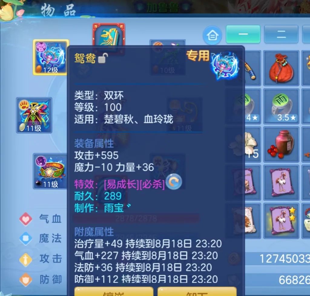 少侠'王功钦' 这罗刹女是挺弱的吧 无忧: 少侠是不是在“刺激”其它小伙伴,1645的法资,其它资质也均大于1570,红心成长,打书倾向于血耐法完全没有问题,无忧建议少侠的血脉换为【鬼车血脉】,收益会更高,并且血耐感知法能够成批出场的话效果会更好。 少侠'孙宪龙' 怎么样 无忧: 要无忧来点评一下的话,这双鞋子易成长带来速度加成是19点(以目前黑宝石锻数来看),基础速度与防御都低了些,综合来看易成长带来的加持基本被基础属性抵消了,而迅捷带来的收益为速度增加1.5%(与易成长同时存在时),少侠这双鞋子其实是比较优秀的双红止戈鞋,所以我们在甄别装备是好是坏时,一定要综合特效特技与基础属性,综合来看。 少侠'曾经少年的你' 无忧,其实我挺想升级的,可是出了这把武器,我还的挺犹豫的 无忧: 这件武器实在是顶,少侠锻数目前11-12,不如带上这把武器继续在盟主中“叱咤风云”,等实力资源提升差不多了再升上去。 少侠'问号' 大胖无忧请指教 我这笑傲第一风伯不为过吧 无忧: 单论资质的话,全都大于1550,还是优秀的红心成长,但打书方面问题还是挺大的,强壮与无极浣熊血脉带来的收益并不高噢~无忧建议带星海神鲲血脉,强壮可以换个光芒或者灵蕴等,驭兽佩戴牵羊+坚守效果会更好些。 少侠'王' 血耐宝宝,防御是不是低,无忧要不要洗体 无忧: 这只幽灵虎的防御在95并不算低了,少侠询问防御是不是低了,可能是灵力较低导致法防较低受到伤害较高,所以觉得不够耐,吃些法元宵就比较完美了~ 扫一扫以下《幻唐志手游》二维码,根据自己的手机(安卓版、IOS版),下载对应的幻唐志手游客户端!赶紧邀请小伙伴,一起畅玩游戏! [编辑:ssc]