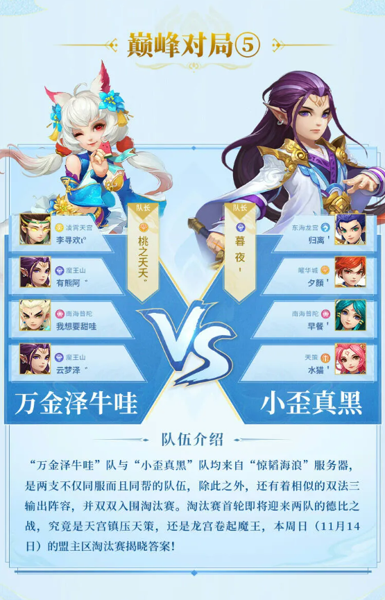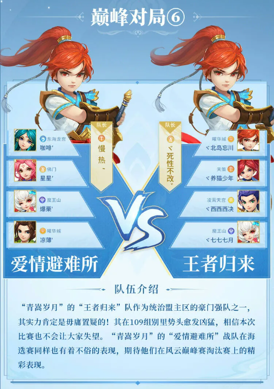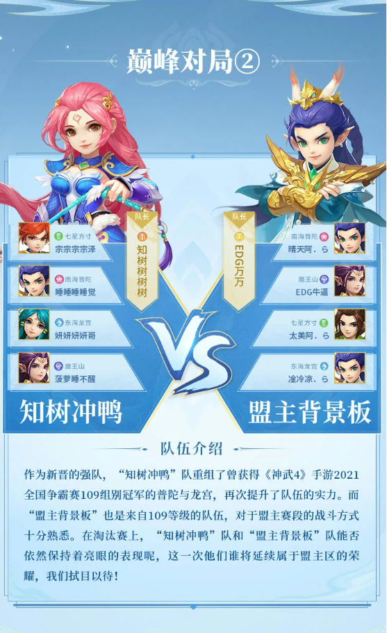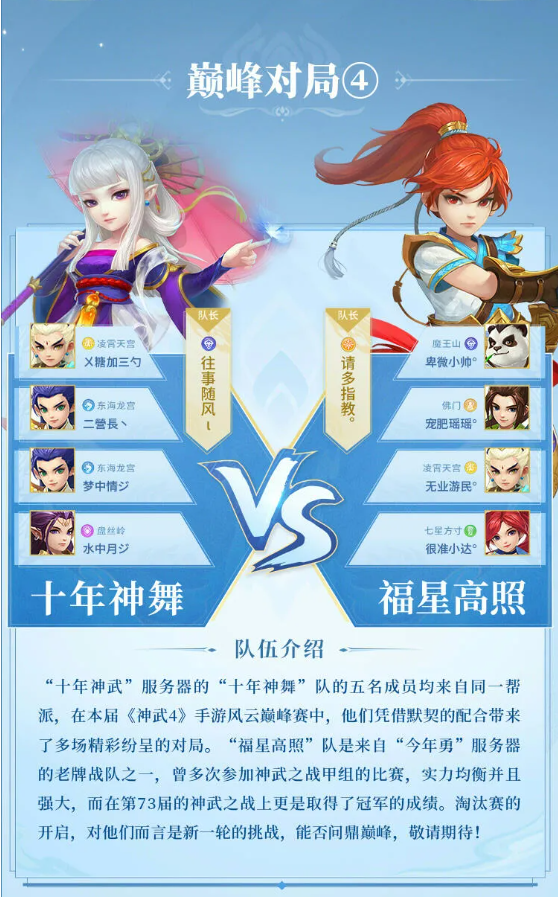 《神武4》手游100级盟主区淘汰赛队伍介绍