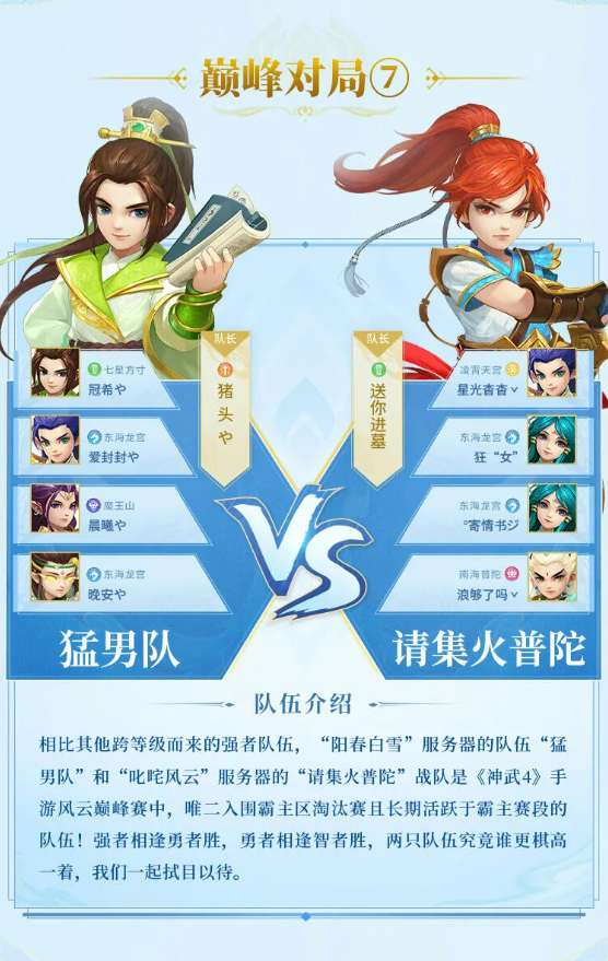 《神武4》手游80级霸主区淘汰赛队伍介绍