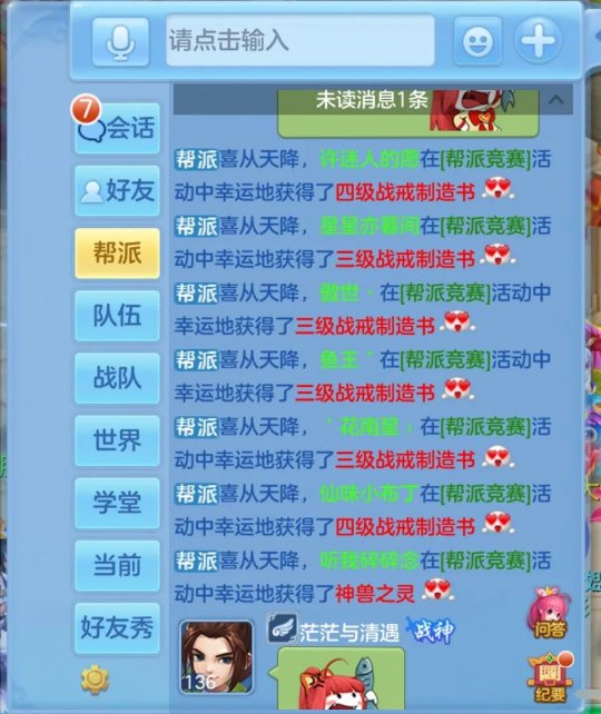 《神武4》手游神武世界每天都会有许多新奇事情发生,一起来看看吧~ 梦中的龙龙.: 新区打造个萌宠乐园 大娃、二妹、三妹,不愧是萌宠一家人,这个在新区的造价可不低啊,少侠这几个宠物召唤出来,也是妥妥的拉风! 下雨天: 贸然问一句:今天的战戒是批发的吗…… 这一排的战戒制造书非常整齐,而且都是三级四级,倒是开头一位少侠的神兽之灵乱了阵形。 事与愿违: 字画换了本高必,转手为了庆祝挖本山水,又出一本高必??? 左一本高必,右一本高必,无忧留下了羡慕的泪水~请问出高必有什么秘诀嘛?快给大家伙分享分享吧! 扫一扫以下《幻唐志手游》二维码,根据自己的手机(安卓版、IOS版),下载对应的幻唐志手游客户端!赶紧邀请小伙伴,一起畅玩游戏! [编辑:ssc]