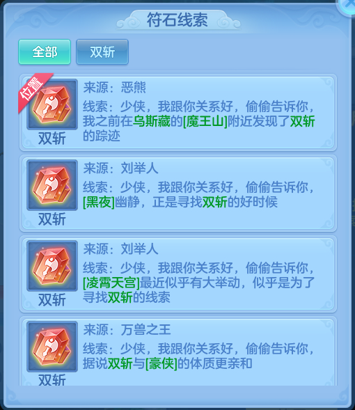 《神武4》手游高级符石怎么挖?如何提升系统角色心情值?法器的选择固然重要,但是它的威力也离不开搭配的符石,那么如何获得高级的心仪符石呢?一起来看看。 获取符石分为以下三个步骤,接下来我将为各位少侠仔细讲解: ①选择场景领取铲子 ②寻找场景相关系统角色打探符石线索 ③提高铲子等级挖掘更高级符石 点击临时背包中法器道具的“获取符石”按钮或者法器界面的“寻找符石”按钮,就可以打开符石分布地图了。 【如何选择场景】 符石地图上展示了: ①每个场景埋藏的符石类型、埋藏符石的剩余数量/总数量。 ②场景相关系统角色的综合心情:综合心情越高,代表该场景相关角色整体的心情越好。 ③少侠剩余的可领取符石铲的次数为每周一0点增加五次,每天最多可以领取3把符石铲。 ④推荐优先选择核心符石的埋藏场景发掘核心符石,核心符石对法器强度的提升更大。通用符石则需要根据法器类型来选取。 【寻找系统角色】 下面我们以乌斯藏为例: ①左侧展示了场景中埋藏的符石类型 ②右侧展示持有场景符石线索的系统角色 针对场景界面,可能各位少侠会有以下疑问:系统角色的心情受什么因素影响?如何更快的提高系统角色的心情? 每位少侠的系统角色的心情独立,但会受到全服其他少侠与该系统角色交互行为的影响,改变心情主要有3个因素: ①赠送:赠送系统角色喜欢的物品增加其心情,赠送讨厌的物品则减少 ②切磋:与部分系统角色切磋后影响其心情,可能是增加也可能是减少 ③时间:系统角色的心情会随时间波动 针对赠送和切磋,可以通过和查看该系统角色闲聊或者赠送界面左侧的角色描述,来寻找系统角色喜欢的物品和是否喜欢切磋的蛛丝马迹。 也可以直接查看角色的评论,看看是否有其他少侠留言赠送和切磋的结果。 【如何挖到高等级符石】 选取符石目标时,可以从自己想要的符石中,选一个显示系统角色最多的符石作为目标来挖取。 还可以使用标记功能将已收集完线索的角色打上标记。 挖出高品质符石概率的唯一影响因素是挖符石时生效的线索数量,并不是少侠此时持有的线索的数量。 生效线索数可在挖宝前的提示中查看,生效的线索数量越多,挖出高品质符石的概率越大。 可以从符石铲道具描述上的线索列表来查看自己本次收集到的所有符石的线索。 其中,最重要的是埋宝位置,其次是挖宝时间,如果挖宝位置与埋宝位置不对应,你收集的线索在挖宝时都是无效的。 挖宝时间则是需要少侠根据白天或者黑夜,在埋宝点进行挖宝,才可生效。 为了提升生效的线索数量,5条普通线索是必须要获取的,而埋宝位置、挖宝时间这2条特殊线索也是必须知晓的。 当少侠针对某个效果的符石进行搜集线索时,达到一定数量后,铲子会升为白玉铲。 【如何寻找对应埋宝地】 ①获取位置线索后,打开线索列表,点击位置线索中的地点文本链接可自动寻路 ②如果没有获得位置线索,但知道位置,可以从场景界面的埋宝地处点击前往 ③打开符石铲绑定场景的地图,可以从地图上看到符石可能埋藏的位置。 通过挖宝前生效线索数量和自己身上携带的目标符石线索数量来判断是否为正确位置。 以上就是我为各位少侠带来的符石获取详细讲解。不知道各位少侠还有什么挖高级符石的方法,欢迎评论区一起讨论~ 扫一扫以下《幻唐志手游》二维码,根据自己的手机(安卓版、IOS版),下载对应的幻唐志手游客户端!赶紧邀请小伙伴,一起畅玩游戏! [编辑:ssc]