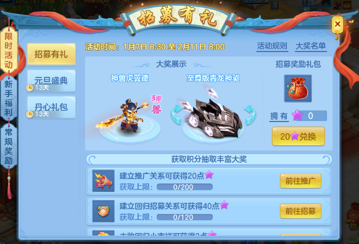 《神武4》手游最新资讯早知道,快一起来了解下本周神武世界里即将会有哪些变化吧!先在这里为大家梳理一下本次更新维护的核心内容~ 更新提纲 1、帮派宴会“谁是卧底”玩法限服开放 2、聚宝盒耐久打折活动上线 3、战戒系统相关调整 4、新增招募有礼活动 5、战友系统限服开放 6、其他调整 帮派宴会“谁是卧底”玩法限服开放 帮派宴会(晚上)期间将有可能出现“谁是卧底”玩法: 1)帮派成员可报名参与,与小伙伴们斗智斗勇。 2)围观者也可参与猜词或投票,协助找出真相。 3)本周限【天下无双】【横扫千军】服务器开放。 4)你画我猜奖励调整为社交积分。 聚宝盒耐久打折活动上线 1、活动时间: 2022年1月7日9:00至2月11日9:00,活动期间聚宝盒升级为优惠聚宝盒。 2、活动说明: 1)活动期间使用聚宝盒进行宝盒任务和委托玩法时将享受7折优惠。 2)活动期间聚宝盒首次购买月卡额外赠送三天。 3)若少侠已购买月卡,活动期间内登录将延长三天月卡天数。 4)委托游历任务的消耗不在折扣活动中。 战戒系统相关调整 1、新增4阶战戒技能“灵虚”: 使用物理攻击时有概率对目标附加“灵虚”状态,此状态下受到主动法术攻击的伤害结果提高,可叠加2层,叠加时提高效果并延长持续回合数,多段法术攻击仅第一段可受此效果加成。 2、新增战戒背包功能: 物品栏中的战戒自动转移至独立的战戒背包,新获得的战戒也将直接进入战戒背包,不再占用物品栏空间。 3、新增了战戒引导任务 4、支持了分解战戒库中的战戒 新增招募有礼活动 新增招募有礼活动,招募回归完成任务即有机会抽取坐骑神兽大礼。 1、活动时间: 2022年1月7日8:30至2022年2月11日8:00 2、参与条件: 角色等级≥30级的少侠可在游戏内通过“奖励”按钮即可进入活动页面。 3、奖励说明: 活动期间,少侠通过建立回归招募关系、建立推广关系、击败回归小吉祥、以及与回归少侠组队参与雪球大战和门派论剑,将有机会抽取坐骑、神兽等好礼! 战友系统限服开放 1)可在游戏内完成搜索、添加战盟好友等操作,并通过战友系统与战盟好友跨游戏聊天。 2)本周限【万木争春】服务器开放。 其他调整 1、破胆虎矛锋芒如初,神兽虎翼德再入江湖,行侠仗义 1)神兽虎翼德的武器修复完成后,将有一定概率出现在日常战斗中助力各位少侠,并肩作战。 2)虎翼德来信,邀请你继续探索这场大雪背后隐藏的真相。 2、神武之战投票方式调整 1)新增道具【服战投票券】,神武之战投票期间,角色等级≥50级的少侠在每天活跃度达300时,可以获得【服战投票券】,使用后可为报名队伍增加选票积分。 2)新增刷票举报功能 3、法器调整: 雷霆符石效果调整为触发麻痹概率和玩家魔力点数有关,并降低了麻痹状态持续回合数。 *以上是无忧带来的一手爆料* *最终效果可能会有所调整* 扫一扫以下《幻唐志手游》二维码,根据自己的手机(安卓版、IOS版),下载对应的幻唐志手游客户端!赶紧邀请小伙伴,一起畅玩游戏! [编辑:ssc]