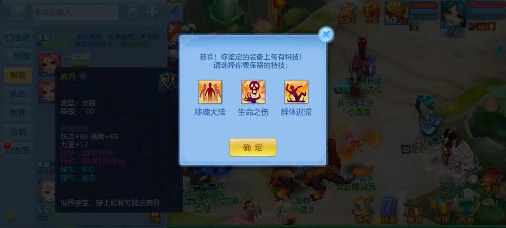 不知道我这个腰带怎么样 属性虽然低了些,但是三红装备可遇不可求,“群体净心”“愤怒”“易成长”都是辅助必备的特技特效~羡慕两个字,无忧已经说倦了 T-T 少侠' ':