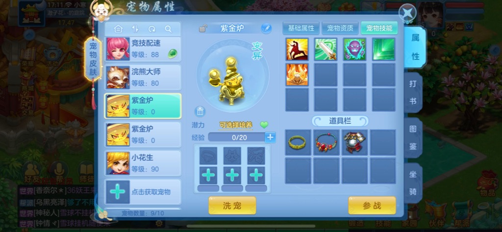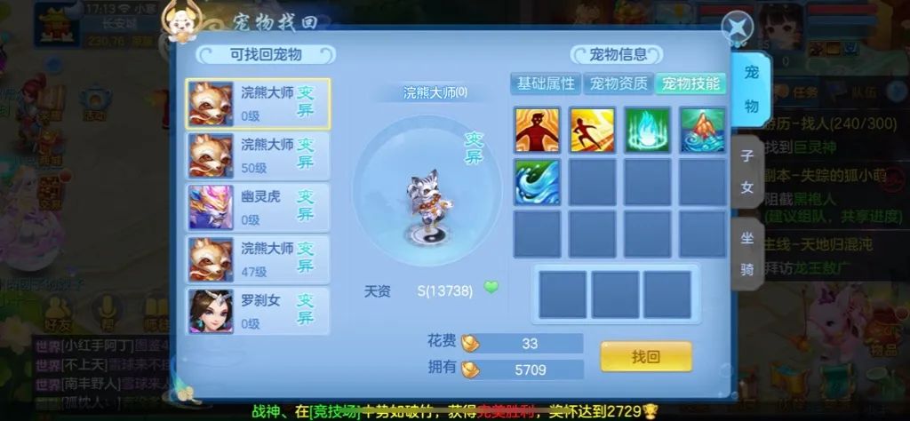 从开始一直被绿,绿的我心慌! 浣熊、九头鸟、紫金炉,全是5技能绿心,再看这个资质,也没有什么亮点,无忧都心疼了。 小喜子: