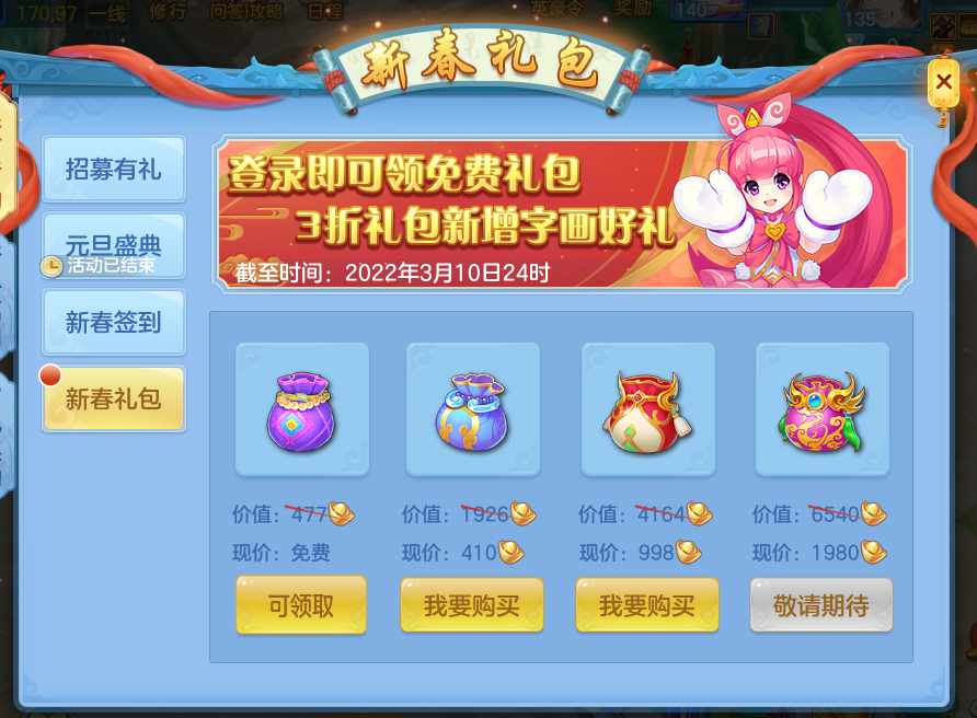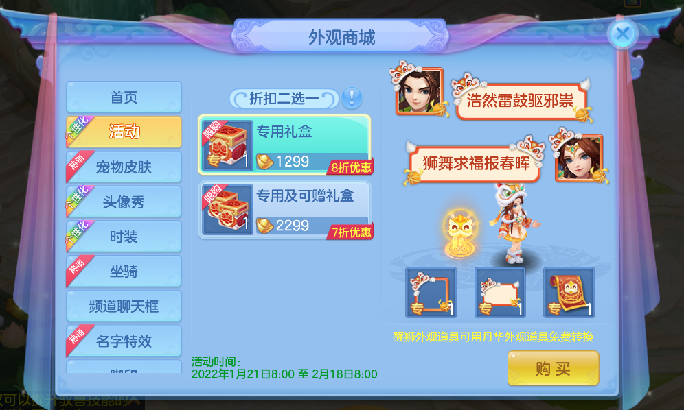 《神武4》手游最新资讯早知道,快与无忧一起来了解下,本周神武世界里即将会有哪些变化吧!无忧先在这里为大家梳理一下本次更新维护的核心内容~ 更新提纲 1、新春签到活动上线 2、语音拜年玩法上线 3、福狮舞新年活动开放 4、烈焰之灵挑战开放 5、丹元盛会活动开放 6、福狮贺新,狮舞迎春!新春外观上线 7、福运礼包贺新春,诚意年货庆佳节 8、虎年新春至,折扣享不停 9、征战礼包打折及开放赠送 10、新春呼朋唤友活动开放 11、新年组团选美海选赛结果即将公布 12、战友系统全服开放 13、其他调整 新春签到活动上线 1、活动时间: 2022年1月21日8:30至2022年2月11日5:00 2、参与条件: 人物等级≥30级 3、活动介绍: 每日登录签到可获得奖励,更有概率成为当日锦鲤,抽取包含神兽虎翼德、至尊版青龙神驱的锦鲤大奖!达成活跃条件可开启新春活跃红包,累计签到达到一定天数可以获得山水玄机图、高级魔兽要诀等好礼! 语音拜年玩法上线 开放语音变声活动,热热闹闹过大年! 1、开放家园语音拜年活动 1)在家园许愿后可以拜年,可以给对方发送带有新春大表情的语音拜年祝福,活动持续至2022年2月11日。 2)每个家园收到或发送过拜年语音,将免费解锁一只拜年鹦鹉放于庭院,有新的拜年祝福时会提醒主人。 2、新增帮派语音变声玩法 1)帮派频道新增语音变声玩法,可在帮派频道拓展栏中的“变声”入口处体验该玩法,玩法持续至2022年2月11日。 2)录制语音后,可以给语音添加烟花爆竹等背景音,还可以改变自己声音的音调。 福狮舞新年活动开放 佳节祈求虎年运,祥瑞狮舞福临门,唐皇邀请舞狮队前往长安城表演。 1、活动时间: 1月21日至2月10日的每日10:00至20:00,全服开启福狮舞新年活动 2、参与条件: 人物等级≥50即可参与 3、活动介绍: 1)少侠将与醒狮护卫队一起阻止来势汹汹的刺客,护送有功的少侠将获得唐皇的赏赐。 2)1月26日9:00至1月31日22:00,街头小贩将出现在宴会场景,少侠可前去购买礼包,获得新年奖励。 烈焰之灵挑战开放 1、活动时间: 2022年1月21日8:30至2022年2月11日5:00 2、参与条件: 每个整点10分在各地刷出烈阳虎,少侠等级≥50级,3人及以上队伍可以发起挑战 3、玩法介绍: 1)服务器等级≥80级时,每个整点10分青河镇会出现异常强大的烈阳虎,等级≥80级的少侠可以前往挑战,获胜时较大概率获得和挑战者等级相符的装备灵,还有其他道具奖励。 2)试炼虎仙会在战斗中提供火灵之力,合理利用可以降低挑战难度。 3)活动时间内,可通过新春签到获得【虎虎生威】状态,能在挑战烈阳虎的时候,降低负面状态的效果,让挑战更加顺利。 丹元盛会活动开放 1、活动时间: 2022年1月21日至2022年2月10日 2、玩法介绍: 1)上线即可领福利,活动期间每天19:35至19:55,系统每隔5分钟发放一轮仙丹,第2至5轮仙丹领取需角色等级≥25。 2)活动中有一定概率触发“百炼仙丹”小游戏,参与即有机会获得最高3倍奖励。 3)每天第1次使用仙丹无活跃度限制,第2次使用需活跃度≥100,第3-5次使用需活跃度≥200。 4)活动期间,唐王也会随机为在线的侠士们献上新春祝福! 福狮贺新,狮舞迎春!新春外观上线 一、全新坐骑“祥瑞福狮”上架 赤舞金瞳生祥瑞,全新单人坐骑【祥瑞福狮】上架。 1)使用【坐骑元神·高级】即可兑换,【坐骑元神·高级】可前往奇货商场购买。 2)满足一定条件后,祥瑞福狮可与其他高级单人、特色单人以及神驱坐骑互相转化。 这个新坐骑“祥瑞福狮”又霸气又可爱,无忧无忧,我等不及了,什么时候能买呀? 新坐骑会在本周五更新后上线,而且现在首次购买【坐骑元神·高级】还可以享受8折优惠,每个角色限购一次! 二、全新时装、挂饰上架 浩然雷鼓驱邪祟,狮舞求福报春晖。全新时装套装【狮舞迎新】,限时挂饰【虎虎生威】上架。 1)【狮舞迎新】时装套装包括成衣,头饰,背饰。 2)【虎虎生威】出售时间:2022年1月21日8:00至2022年2月18日8:00。 3)新年换新装,时装换购功能上线 ①已拥有时装的少侠购买新时装时可以在时装结算页面使用时装换购功能。 ②已有时装可以以一定比例抵扣为时装积分,超出购买时装价格的部分将以时装积分的形式返还给少侠。 ③购买成功后,被换购的时装会消失。 ④目前仅支持成衣部位的换购。 4)醒狮系列外观礼盒限时上架 ①外观礼盒包括醒狮头像框、醒狮聊天框、醒狮队标及醒狮脚印。 ②同时支持将丹华系列外观道具免费转换为醒狮系列外观道具。 三、新春标签活动限时开放 1)1月21日维护后至2月18日8:00限时开放新春聊天标签活动,发送特定条件的红包或祝福,以及直接购买或赠送都可以获得聊天标签。 2)奇货商城和外观商城-名字特效分页,新增“新春大吉”标签。 福运礼包贺新春,诚意年货庆佳节 一、新春礼包限时上架 新春礼包限时上架,特别新增精品培元丹。 1、售卖时间: 2022年1月21日8:00至2022年3月10日24:00 2、礼包介绍: 等级≥30级的少侠可免费领取第一档礼包,另有三款超值特惠礼包可供选择购买。 3、礼包特惠: 3折礼包额外赠送战戒制造书,1980档礼包特别新增精品培元丹。 有了这个培元丹,我的橙心镜花灵终于可以变紫心了! 二、帮派商店 2022年1月21日8:00至2022年2月18日8:00,帮派商店新增新春年货、新春帮派烟花售卖。 虎年新春至,折扣享不停 2022年1月21日8:00至2022年2月18日8:00,世界祝福、帮派红包、普天同庆享6.8折优惠。 征