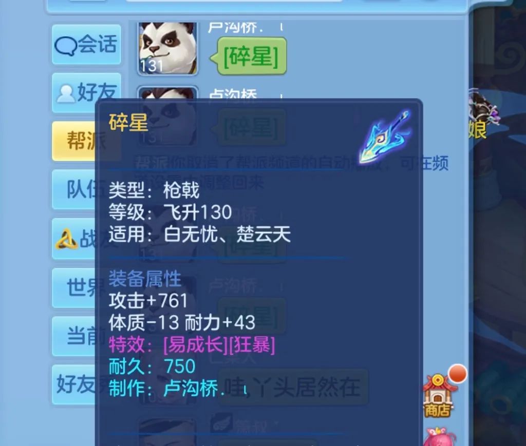 《神武4》手游三界每天都有趣事发生,本周特别多,所以无忧决定来和大家分享一下大家的趣事快乐~ 少侠"梁浩辉": 近日,乌龟保命没触发过,为了提高它的保命几率高达80%,我决定换护符。挑战114最低速度盲熊,我有多爱神武,已经无法用言语表达,看图! 为了提高触发保命的几率就装上剑气高保命护符,少侠这波操作,是不是在欺负无忧的智商,以为无忧看不懂(问就是护符太多)!还有这只绿心速度159的蛮熊,PK时应该是队伍中的“复活小能手”吧。 少侠"七分饱先生,": 第一次投稿不知道能不能成功,洗护符重置一样的见过,珍珑遗迹以旧换新见过吗。 护符重置一样无忧倒是见过一两次,不过这玲珑遗迹开宝箱,感觉好像发生了什么,又好像什么都没发生。 少侠"你是谁啊": 130天花板? 761的高攻击,加上易成长特效就已经羡煞旁人了,少侠还有狂暴加持,这要是PK起来,不知道有没有扛得住的少侠来挑战一下?(反正无忧扛不住...) 少侠"么么白": 银子很多8呀~愿大家都很多8 八百多万银子无忧看了都羡慕,银子数还刚好是7个8,是不是预计着少侠之后也是“发发发发发”? 少侠"欢颜、": 电视就要一起上,有福同享 “故事. ν”和“晴天. ν”两位少侠不仅珍兽之灵要一起拿,120级丹山男灵和四级战戒制造书的丰厚奖励也要一起拿,无忧要是名字后面也带个“. ν”是不是也能来个珍兽之灵? 扫一扫以下《幻唐志手游》二维码,根据自己的手机(安卓版、IOS版),下载对应的幻唐志手游客户端!赶紧邀请小伙伴,一起畅玩游戏! [编辑:ssc]