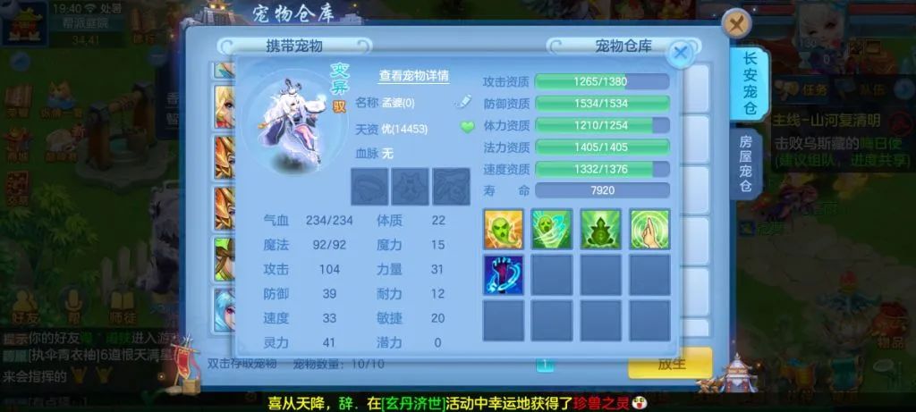 《神武4》手游新鲜事,神武世界每天都会有许多新奇事情发生,一起来看看吧~ 予予爱吃鱼: 平平无奇,能上个电视不,哈哈哈。 红心5技能图鉴资质的蚩尤,攻体速三项资质全满,高达17304的天资也不是他的极限,把法资补满仍有元宵剩余。 这就是少侠说的平平无奇的宝宝么?这是典型的“别人家的孩子”哇! 柠檬精: 之前投稿了两只钧邪,现在又用0丹洗出一只孟婆,看到他们的成长,我真的是倍感“欣慰”。 都是满技能的宠物,但是绿心资质太过可惜了,好像出货了又好像没出,其中的6技能做隐驱、卡速等功能性宠物,也是不错的选择哦~ 扫一扫以下《幻唐志手游》二维码,根据自己的手机(安卓版、IOS版),下载对应的幻唐志手游客户端!赶紧邀请小伙伴,一起畅玩游戏! [编辑:ssc]
