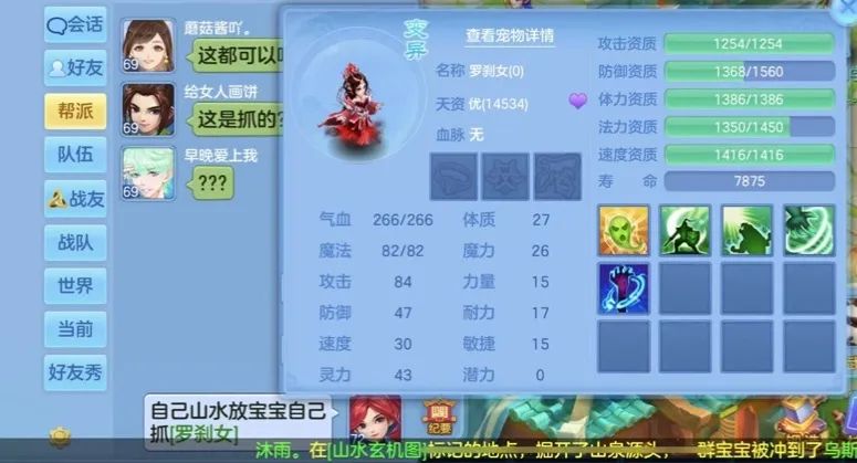 《神武4》手游新鲜事,下面又到了本周的鉴赏宠物、装备的环节,最近有不少玩家鉴定出好东西,我们一起来看看。 少侠'cherry': 这资质,这蓝心,我哭了。 这只桂花精灵法力、速度、体防资质都很优秀,称得上全面发展,成长可以使用培元丹进行提升,看到少侠宠物的名称,想必是把这只桂花打造成了单法宝宝,期待它的表现! 少侠'是个小猪猪': 这个横扫千军怕是boss顶不住。 之前投稿的玩家大多数都是用大化不争打出几百点的伤害,无忧极少看到过“攻击流”,这横扫天下的伤害足足有368,让人大开眼界,不过倘若少侠再变成程咬金,伤害又可以增加许多了~ 少侠'金': 牛不牛 这红心成长加上全面资质,确实难以超越,高防御、高保命提高其生存能力,再加上攻坚审判,对被克制宠物也能造成不俗伤害!无忧只想问问这建木仙怎么洗出来的,快教教我~ 少侠'啊柳呀': 新玩的游戏区,看到一个五宝忍不住就去挖了山水,结果放宝宝了,还被自己抓到了。本身想着是个两三技能的宝宝拉倒了,没有看直接发到帮派里,结果打开一看吓到了。是个满技能的罗刹女,而且还是个紫心的,资质也挺满意。哈哈哈哈哈。 有听说过山水放变异宝宝的,没听说过抓了自己放的变异宝宝,还是紫心满技能的罗刹女!这张山水直接送少侠一只好宠物!我能说这个五宝来得正是时候吗? 少侠'快乐人生': 答题给一本高书,吉祥也给一本,真的是每天一个小惊喜。 当一个人运气好的时候,答题拿高级夜战,从吉祥那又拿一本高级法术暴击,挡都挡不住~不过少侠这倒是提醒无忧了,回头也要找吉祥要两本高级兽诀。 扫一扫以下《幻唐志手游》二维码,根据自己的手机(安卓版、IOS版),下载对应的幻唐志手游客户端!赶紧邀请小伙伴,一起畅玩游戏! [编辑:ssc]