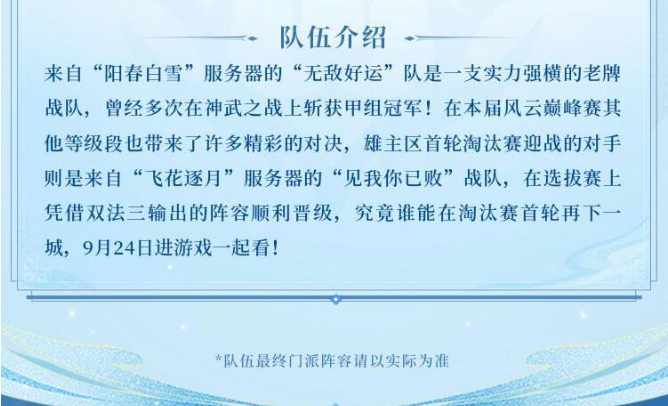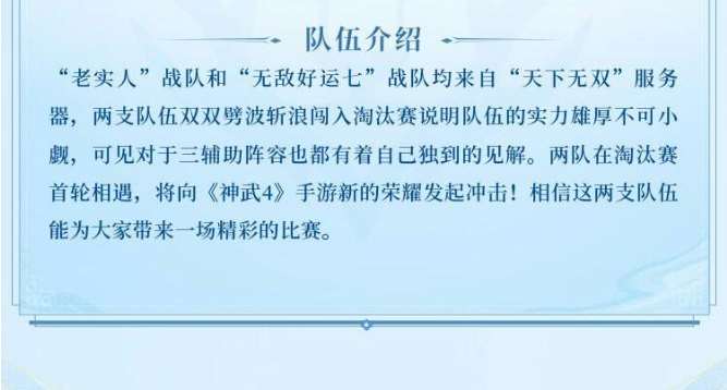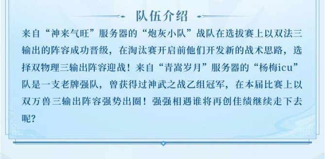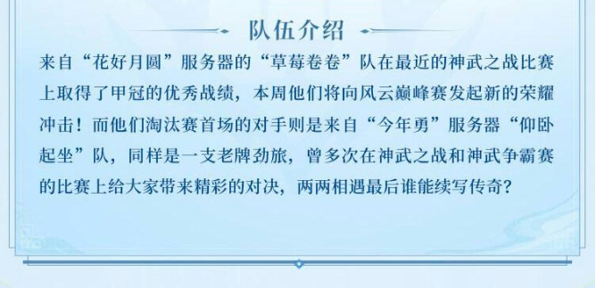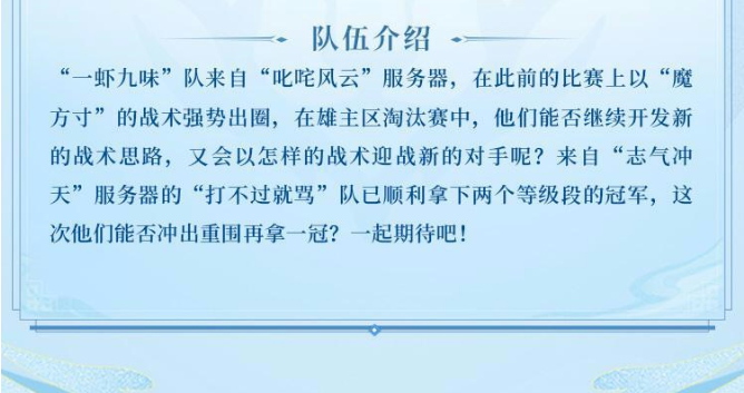 《神武4》手游风云巅峰赛 淘汰赛队伍介绍