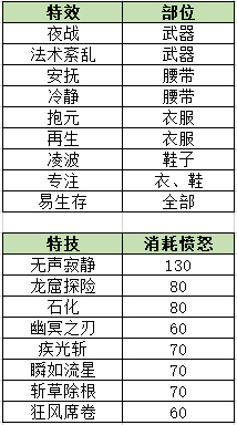 《神武4》手游全新角色即将上线,这段时间被天天催天天催,说怎么新角色还没有消息?其实两位新朋友已经准备上线了,来看看爆料。 全新特效、特技抢先预告,除了新角色,还从策划小哥那里打听到了关于全新特效、特技的消息。 全新特效 夜战(武器):受夜晚影响降低的攻防减半,仅输出人物生效 法术紊乱(武器):单法对宠物35%几率提高15%伤害;15%几率使受击目标法防降低10%,选中目标的几率额外+15%,若自身的变身卡附带技能未对受击目标造成伤害结果加成时,触发几率额外+15%(每个目标独立计算) 安抚(腰带):自动给出场的宠物降低受伤害结果10%的状态,效果持续8回合 冷静(腰带):使用特技的愤怒消耗降低20点,最多降低不超过原愤怒消耗的40% 抱元(衣服):使用技能或特技治疗、复活目标时,自身有10%几率回复8点愤怒 再生(衣服):白天每回合回复等级×2的气血,与再生类技能互斥,仅输出人物生效 凌波(鞋子):回合末20%几率获得速度提高5%的状态,持续3回合,可与坐骑通用“迅捷”叠加;进战斗有30%几率马上触发且提速效果额外+1% 专注(衣服、鞋子):封印命中率提高2%,多个专注特效可叠加 易生存(全部位):受物伤降低3%,受法伤降低2%,可叠加不超过4件,可与其它特效共存,不与易成长共存 全新特技 无声寂静(130愤怒):3回合内,自身防御降低15%,使双方特技消耗+80%,可用解封类特技解除 龙窟探险(80愤怒):可为己方宠物单位为0的人物召唤一只小魔龙(在肉盾、卡速、千速中随机),可当宠物操作,第二次及之后使用此特技可能失败,全队共享使用次数 石化(80愤怒):对敌方宠物使用,70%几率将其转化为石碑并出现在我方阵营3回合,石碑状态下的宠物不可操作,我方阵营的石碑被击倒则目标宠物恢复正常,最多使敌方同时存在一个石碑 幽冥之刃(60愤怒):攻击目标,70%几率使其被附加鬼魂术1回合,必然给自己宠物1回合驱鬼,被附加的敌方宠物若倒地,复活回合缩短为2;可对敌方人物附加,但其被驱鬼克制加成不超过15% 疾光斩(70愤怒):以略低于普通攻击的伤害提速物攻并回复伤害结果×50%的气血,同时为自己附加8回合守护(提速同先发制人) 瞬如流星(70愤怒):以略低于升龙的伤害提速攻击并回复伤害结果×50%的气血,同时为自己附加8回合守护(提速同龙翔九天) 斩草除根(70愤怒):忽视目标10%防御进行物理攻击,减少目标8回合特技属性状态(击倒或必杀则直接驱散),自身获得或延长对应状态4回合 狂风席卷(60愤怒):为自身附加4~5回合暴风状态(自身部分防御转为法攻)并以单体法术攻击目标 扫一扫以下《幻唐志手游》二维码,根据自己的手机(安卓版、IOS版),下载对应的幻唐志手游客户端!赶紧邀请小伙伴,一起畅玩游戏! [编辑:ssc]