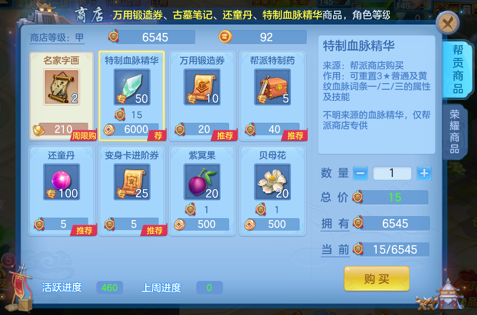 1.帮派商店调整 2.混沌法器调整 3.战斗相关优化 4.WIN端限服支持三开 5.其他调整 帮派商店调整 1)5月15日(周一)5:00后,古墓笔记、帮派特制药等道具下调至服务器等级≥85级开放。同时新增特制血脉精华售卖。角色等级≥服务器等级或110级且满足帮派活跃要求的角色可购买相关道具; 2)开启新商店模式的服务器,个人活跃采取新的计算规则:仅能通过参与帮派相关活动获得。 3)服务器等级升级至85级时,商店模式将会在服务器升级下周一5:00变更为新模式。 混沌法器调整 1)聚灵草调整为在发掘核心和非特产通用符石时也生效,可提高获得4级符石的概率,道具持续时间调整为3天。 2)庄园种植新增聚灵草,已解锁混沌法器的庄园主人和伴侣可种植,每株消耗10金币。 3)新增快速获取线索功能,在符石铲线索列表里可以消耗金币,并提交一定数量的指定烹饪或者药品补充满符石线索。 战斗相关优化 1)技能: 【一触即燃】:“一触即燃”和“燃火”状态新增特技攻击时可为选中目标附加“魔焰滔天”状态的效果 【冲天巨浪】:技能攻击额外忽视宠物或子女15%法防的效果调整为“浪潮”状态下攻击额外忽视宠物或子女10%法防 【七星北斗】:“七星北斗阵”状态新增攻击人物时额外提高5%法术命中率的效果 【千里奔袭】:“奔袭”状态新增不会被附加“魔焰滔天”状态的效果 2)战备界面支持便捷切换套装、魂技方案。 WIN端限服支持三开 WIN端支持同时打开并登录三个客户端,限【天下无双】服务器开放. 其他调整 1.帮派竞赛优化 1)帮派竞赛阵营频道提前开放:当日匹配完成后(14:05),即可通过当前频道-勾选阵营频道按钮进入,提前与同盟帮派交流策略。 2)周四帮派竞赛新增道具总览:活动期间可通过左上角信息栏打开道具总览界面,快捷查看各类道具效果及产出方式。 2.时装特惠活动 额外新增【和光同尘】服务器开放,活动期间购买时装成衣30天可享八折优惠,90天可享七折优惠。 3.血脉重置调整 重置无纹血脉时,所需材料消耗降低。 4.携手同游活动调整 携手同游活动调整为在每个阶段结束时自动解除当前同游队伍的绑定,且加入新团队后可以增加组队进度并获取奖励,限【踏歌行】服务器生效。 *以上是无忧带来的一手爆料* *最终效果可能会有所调整* 扫一扫以下《幻唐志手游》二维码,根据自己的手机(安卓版、IOS版),下载对应的幻唐志手游客户端!赶紧邀请小伙伴,一起畅玩游戏! [编辑:ssc]