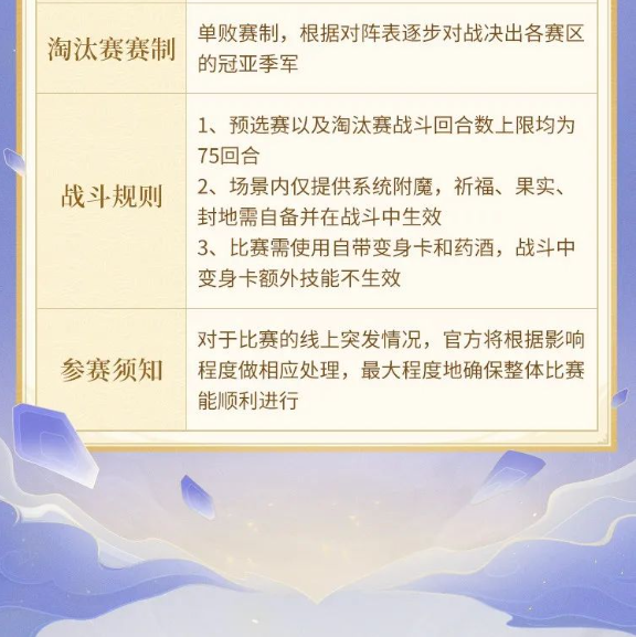 《幻唐志》手游明星排位赛奖励调整,冲击淘汰赛我最强! 排位明星赛赛程表 排位明星赛奖励调整 一、冠军增加限时坐骑奖励 淘汰赛冠军奖励增加天瑞祥云坐骑。 二、前三强增加变身幻化卡奖励 淘汰赛前三甲奖励增加变身幻化卡。 淘汰赛四至十六强奖励增加变身幻化卡碎片,集齐5个碎片可兑换变身幻化卡。 ●皮肤幻化效果: 三、明星赛光环调整 ●参赛获得的明星赛光环使用有效期调整为30天。 最后再来一起看排位明星赛的简介吧!