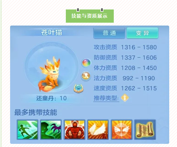 《幻唐志》手游全新六技能55级宠物苍叶猫