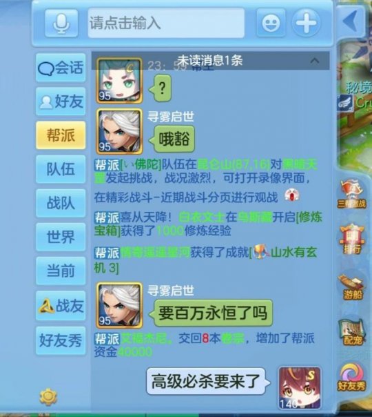 《幻唐志:逍遥外传》山水圣体,一天挖3本高必?少侠们在挖山水时是否有惊喜瞬间呢? 让我们一起来欣赏一下吧! 情寄遥遥星河 “这才叫言出法随,一天挖山水三本高级必杀!” 相忘淤江湖 “山水一次双份高必!” 吃爆炸糖 “触发双倍高级必杀!” 还有高手!原本以为挖到高必已经超级好运!居然还有少侠一天挖到3本高必!胖子,这究竟是言出法随,还是山水圣体? 扫一扫以下《幻唐志手游》二维码,根据自己的手机(安卓版、IOS版),下载对应的幻唐志手游客户端!赶紧邀请小伙伴,一起畅玩游戏! [编辑:ssc]