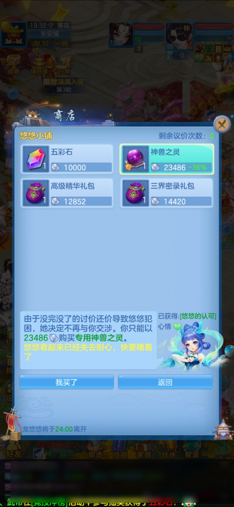 《幻唐志:逍遥外传》八卦新鲜事,长安城来了个“砍价高手”!大家有没有淘到什么好货呢?悠悠小铺活动延长至10月23日,大家在游玩之余可以找龙悠悠议价,便宜购物~ 建议大家每天在活跃达到300时再去,这样可以获得【悠悠的认可】,议价成功后可以获得50%加成! 相约下个十年 “挑战一下最低砍价,看看还有多少比我便宜的” 能和龙悠悠讨价到便宜了33%,不错嘛少侠为什么我跟龙悠讲价,最多只便宜了20%,是不是方法不对。 有可能只是单纯觉得你讲价话术一般。有可能。接下来这位少侠可谓深谙讲价之法…… 两瓶就吐 “谁能有我低?” 我没看错吧,龙悠悠居然给这位少侠便宜了56%!!!是的,你没看错……我收到这位少侠的投稿时也觉得很厉害! 应该让这位少侠给大家传授下砍价诀窍~可惜了,这位少侠没有告诉无忧。不过相信强中自有强中手,其他有经验的少侠可以在评论区进行讨论噢! 扫一扫以下《幻唐志手游》二维码,根据自己的手机(安卓版、IOS版),下载对应的幻唐志手游客户端!赶紧邀请小伙伴,一起畅玩游戏! [编辑:ssc]