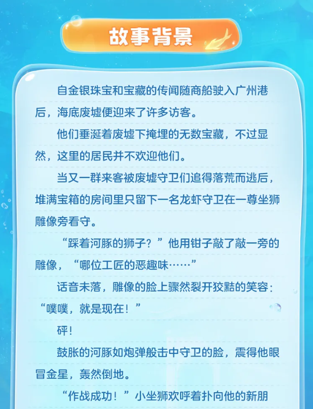 幻唐志逍遥外传坐狮、寒翎新皮肤将在11月21日上线,2款新皮肤的动态染色效果如何呢?我们一起来看看吧! 上期我们介绍了寒翎的新皮肤,这次登场的是坐狮新皮肤!骑着河豚噗噗,闪耀又可爱的坐狮全新皮肤——滨海风情,11月21日上线! 坐狮全新皮肤 听说最近在东海干坏事的人都被扎跑了,就是你们干的吧!小坐狮真可爱!哎呀?!噗噗你别过来呀!扎到我屁股了!你也很可爱,行了吧! 寒翎-水晶之誓 哇!寒翎的新皮肤真是华丽,给人一种仙气飘飘的感觉。施法动作伴随鲜花飞舞,太唯美了! 坐狮-海滨风情 小河豚噗噗一直都是鼓鼓的,好像很生气的样子。坐狮的施法动作变成了一只飞出去的小河豚! 11月21日,寒翎、坐狮携新皮肤和少侠们不见不散! *以上内容非正式版本 请以游戏内更新为准 扫一扫以下《幻唐志手游》二维码,根据自己的手机(安卓版、IOS版),下载对应的幻唐志手游客户端!赶紧邀请小伙伴,一起畅玩游戏! [编辑:ssc]