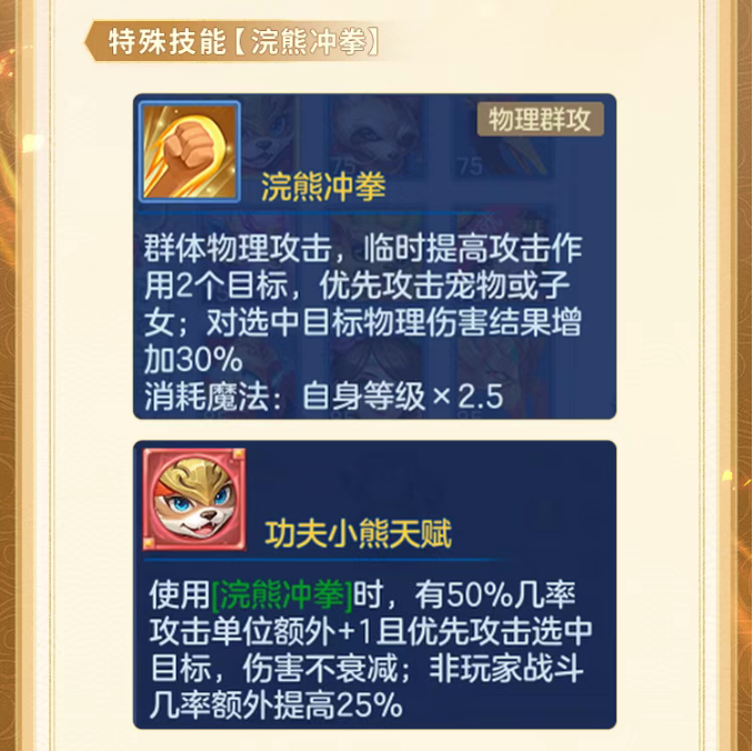 幻唐志逍遥外传新活动「跳得更高」已正式上线,今天要介绍的是65级热门物理宠——功夫小熊!它拥有超1600的攻击资质上限,以及特殊物理群攻技能“浣熊冲拳”(临时提高攻击,且对选中目标物理伤害增加),它的技能可以优先攻击宠物/子女,是清宠小能手噢! 扫一扫以下《幻唐志手游》二维码,根据自己的手机(安卓版、IOS版),下载对应的幻唐志手游客户端!赶紧邀请小伙伴,一起畅玩游戏! [编辑:ssc]