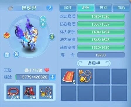 幻唐志逍遥外传:红心超高资质!超17100天资分噬魂兽