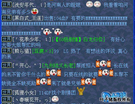 相关资讯: 本来呢,兰茵安安稳稳的跑着修,突然世界上沸腾起来。先是一个人在世界上喊河南人冒出来,之后莫名其妙的多了一堆打酱油路过的人。再之后其他各个省的人陆续冒泡。本来一场认亲会突然演变成了地域攻击。虽然政治色彩浓厚,不过仍旧可以看出,天下无双区究竟有多热闹~
