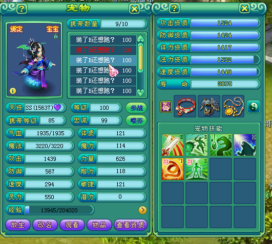 相关资讯: 神武天下无双95龙宫宝宝装备展示,这样的宝宝装备能算一线吗。