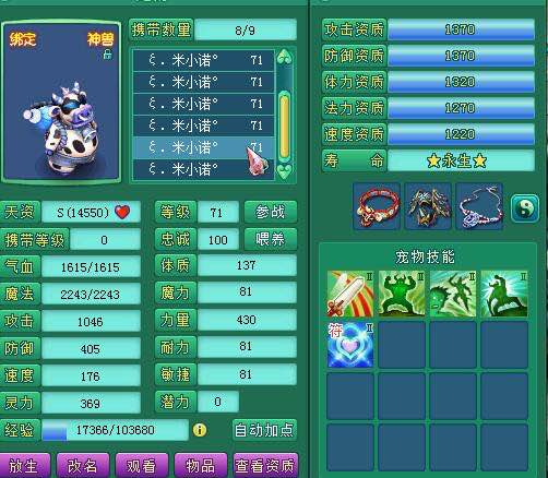 神武66卡级大爷宝宝展示,宠物我只有神珍仙。