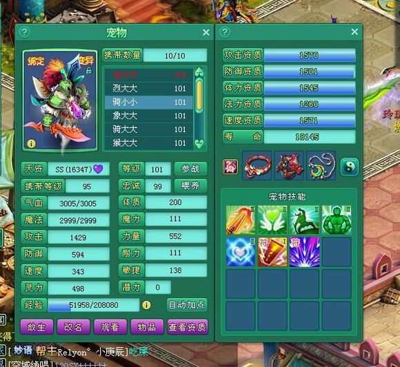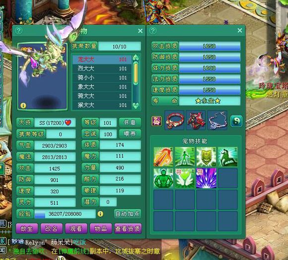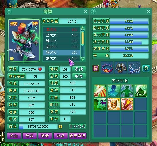 神武清风明月96力耐五庄展示,全身易成长属性爆炸,一身仙兽、5技能宝宝。