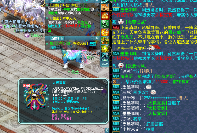 《神武4》电脑版三界新鲜事,今天又看到了一些花里胡哨的操作,比如有小伙伴,就是沉迷三特殊神兽,持之以恒地打造出一只好看但不实用的三特殊牛云长。当然,也有小伙伴,两年多不停攒积分,最后终于攒够了一只仙兽翼龙。一起来看看神武三界有什么好玩的事情发生吧! 玩家1126 (天下无双) 投稿:两年多的不停歇的赚积分终于有了回报 能把仙兽翼龙攒出来的少侠,小昕表示佩服佩服,还十分羡慕呀! 力WZ·3200 (花好月圆) 投稿:三特殊神兽,靠得不仅仅是一点运气,还是持之以恒 如果想打造出一只,这样花里胡哨的神兽牛云长。首先你得拥有一只业报轮回的神兽,将它转换成鼠剑仙,再对它使用潜能/赋能,学会青霜剑舞,而且还要保证业报轮回不能被顶掉。 再将它转换成逍遥神牛,对它使用“牛转乾坤”变成神兽牛云长,再对它使用潜能/赋能,让它学会破碎之锤,而且青霜剑舞和业报轮回还不能掉,最终你就会得到一只极其不实用,且相当花里胡哨的三特殊牛云长了! 无心风月(烟火人间) 投稿:刚换了个神兽蓝胖子,跟朋友吐槽说没护符,朋友说不着急万一杀天罡得个银河呢?再一洗高必+剑气?我说不敢想,结果刚过凌晨就刷新了护符礼包,果断买进,两发出来。 从高神佑+单法护符到,高必杀+剑气护符,这波是赚了还是亏了呢? 墨墨唧唧.(碧雪情天) 投稿:打了8件衣服出了两件双红!真不错 少侠接连鉴定出两件双红衣服,运气属实不差,更重要的是这件满单加的,易成长+涅槃重生的衣服,可以说是能满足所有少侠需求(除了防御有点低之外)。 欢迎在下方留言讨论,了解更多幻唐志的相关内容请关注 叶子猪幻唐志专区。 [编辑:ssc]