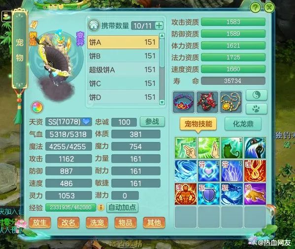 《神武4》电脑版又到了聊三界新鲜事的时间啦!今天带各位一起来看看大佬玩家们,又有什么神装异宠拿出来晒晒了? 热血网友(普天同庆) 挑战全服第一资质风伯! 第一只上场的风伯,就是久违的“天资挑战”环节~每一项资质几乎都达到峰值的他,攻击资质还差5点~ 哪怕带的只是阳光护符,天资也达到了惊世骇俗的17078~除非有另一只,同样如此优秀的风伯,并且佩戴的是带有高级群体攻击法术的银河护符(也就是俗称的“双高护符”)恐怕才有机会与少侠手中的风伯一较高下哦~ 梦猪.(江山如画) 这么好的鞋子,但我就是锁了不用,哎就是玩! 出色的单加属性与迅捷特效,就足以让这双奔月,获得封系与输出系的少侠青睐,而再加上特技烽火连城,更是一跃成为了输出系的“毕业神装”~ 不过这双奔月上,不仅未有宝石与卦象的痕迹,以证明少侠的“就是玩”!放开那双鞋让我来! 萌『小呆」(天下无双) 啊,新鲜出炉的易成长必杀武器~怎么不是单加呢?我是魔王诶。 这把横空出世的晶心·鹤韵,有着几乎满值的攻击,与易成长+必杀的优秀双红。作为输出武器,已经是无比的出色,而黄字属性虽然只是三加,但合计高达332....71点也是相当的可观了。 回头看到少侠,对这把武器挑三拣四的样子,真是让本昕不知不觉地攥紧了拳头! 嘉燕宝宝我女神 (风云再起) 凌晨2点出的,109第一项链有没有! 这条号称是“109第一”的回忆之眸,除了接近满灵和35+18的单加以外,更有凤毛麟角的神佑特效和输出特技嗜血连击。作为物理系的项链来说,似乎...确实是“天下无双”? 小昕在这里只想替109的小伙伴们问一句:“这条项链在哪鉴定的!” 给你脸了.γ (无名谷) 贪狼双煞! 第一只贪狼登场有如熊熊烈火,攻体速三条1570往上的资质,属实是贪狼中的豪杰。打书也很踏实,除了高必杀、高保命与高气势,这三个最受青睐的技能外,还选择了一手高强壮 免受锁魂的压制,可谓是比武中的一张好牌。 而这只炫酷的黑白贪狼,选择了走高速路线,搭配上高逆击,对低速及受增益的单位,有着无比的压制力,美中不足的是,护符上的小敏捷用来抢速尚可。 在高速路线中就显得后劲不足了。若是能与隔壁的偷袭高低互换,那才是真的煞星降临~ 欢迎在下方留言讨论,了解更多幻唐志的相关内容请关注 叶子猪幻唐志专区。 [编辑:ssc]