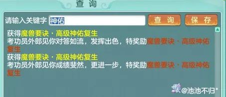 接下来又到了《神武4》电脑版【奇闻八卦】时间!三界之大,无奇不有。今天有一位少侠本想声控山水召唤高级神佑,不料中间环节出现偏差,最终与梦想高书擦肩而过,想知道究竟怎么回事吗?接下来就让我们一起来看看吧~ 池池不归°(缘定三生) 答题2本神佑 知识就是财富,这位满腹经纶的少侠,在科举活动中对答如流,连战皆捷的出色表现,让他得到幸运女神的眷顾,活动中连拿2本高级神佑复生,果然知识可以改变命运~ 凌天帝(纵横四海) 说好的高神佑怎么变了? 接下来是一幕声控奇场面,少侠世界高调预言召唤高级神佑,不过事与愿违先出了一本驾驭宝典,随后虽然出现了心中默念的神佑。不过缺少了关键的“高级”前缀,神武币价值瞬间就少了好几倍,说好的高神佑为什么会变?少侠是不是第二次错挖成了藏宝图? 故笙.ら(清风明月) 献祭自己赚取神武币? 要说起三界各种玄学,时下流行的“献祭大法”便不得不提,少侠便由此法大赚swb。以单身20年为代价成功献祭召唤出高级吸血,爱情与游戏之间,少侠毫不犹豫便选择了后者,看来一定是位神武真爱粉~ 欢迎在下方留言讨论,了解更多幻唐志的相关内容请关注 叶子猪幻唐志专区。 [编辑:ssc]