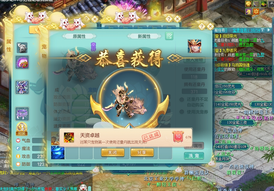 《神武4》电脑版大鉴赏时间到~又到了一周跟大家分享奇珍异宠的时候啦,一起来看看最近都有哪些高资质宠物宝宝? 长门大明神(世外桃源) 看到了昨天的贪狼,我的蚩尤表示不服! 昨天不予少侠晒出了他直接变异满技能的贪狼,今日长门大明神少侠表示不服,特意带上了他的蚩尤前来挑战,在只看成长的情况下,这蚩尤完胜呀~! 不予.(世外桃源) 运气极好! 这只贪狼不仅直接变异满技能,还助少侠获得了天资卓越这个成就,这运气属实没谁了。不过吧,这成长好像有一丢丢可惜了呀! 椅楼听纸鸢 千万内丹,敬大侠一杯! 一般的老区,一个神兽贵一点的也不过七八十万神武币,而一颗神兽内丹却要过千万神武币,这就是有神武币少侠的世界吗? 欢迎在下方留言讨论,了解更多幻唐志的相关内容请关注 叶子猪幻唐志专区。 [编辑:ssc]