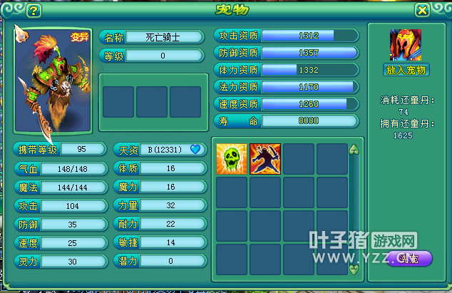 相关资讯: 玩家2500还童丹洗死骑宝宝,本来想着应该会被坑完的,谁知道洗出一只5技能的死骑。。直播真能出喜剧?