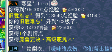 相关资讯: 三大王打了N个回合,愤怒攒够了,4海都出了。 可是说好的极品护符呢?怎么出了高级援助。 竟然被对面轻轻一击就推倒了,盯着屏幕难以置信啊。 躺地板一段时间了,终于快结束了。不要求多高啊,给个5W的高书就满足了。 最后瞄了一眼105W经验的下面…… 只给了高级驱鬼。躺了那么久地板也没有出好一点的高书啊,泪奔了。 [编辑:风汐]