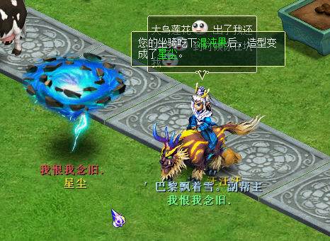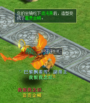 相关资讯: 用久了轮回,想换一下飞行坐骑。 买一个混沌果,第一个竟然出了星尘,这到底跟轮回有多大差? 我只求莲华啊,能不能一次出莲花,第二次不放弃,出了鳐灵,也是醉了。 相关资讯: 再试一次,转来转去还是你啊!!!轮回,再见,不要回来了。 第四次,富贵金鳞,我这辈子都不吃鱼,你别来鱼恶心我。 第五次,星尘,转来转去为什么你又回来了。我竟无力吐槽。 相关资讯: 最后一次,翔天战鹰,好了不转了,心都要碎了。 再来一个染色,只求染色不坑。 成品出炉,感觉大鹰还是蛮帅的,就不提背后的辛酸泪了。 [编辑:风汐]