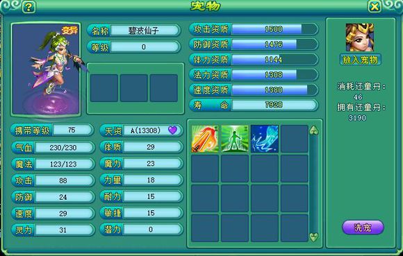- 九天揽月105盟主普陀装备:特技易成长