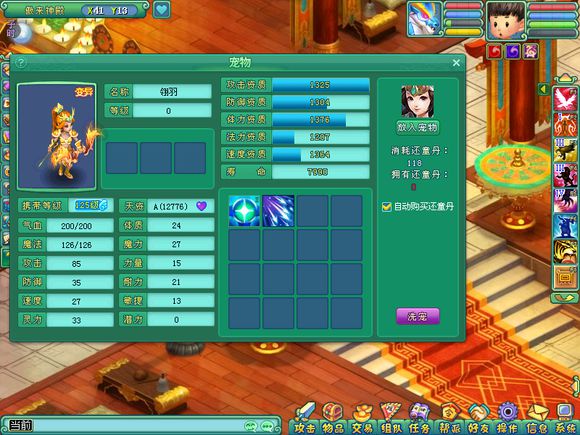 相关资讯: 神武2壕无人性直播洗翎羽,洗到变异,再洗到五技能,接着选染色,直接打书成品,最后染色带宠物装备。