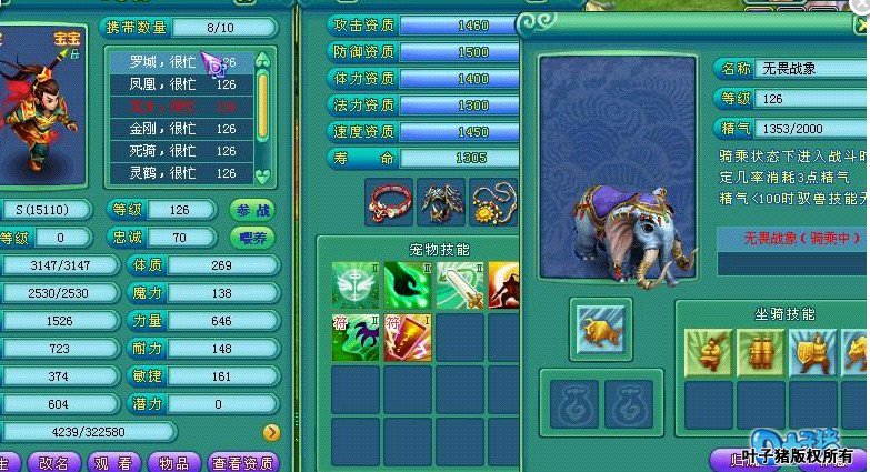 天下无双屌丝121级天魔展示,宝宝都还过得去,从属性看,装备就一般吧。