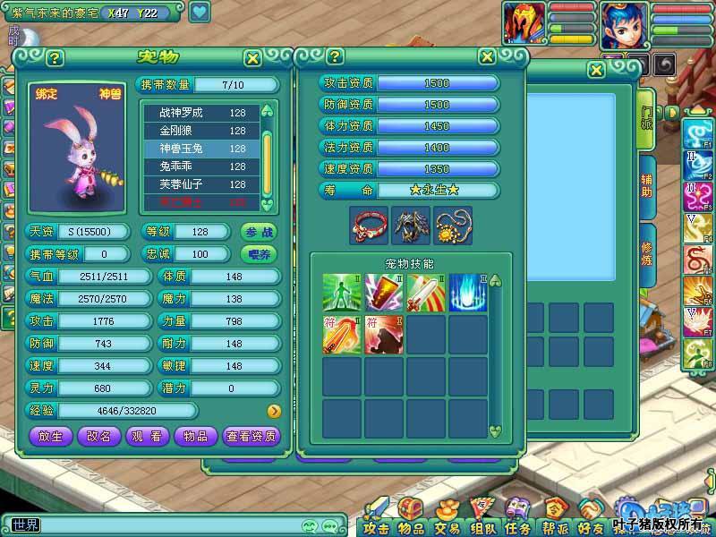神武123级极品龙宫展示,输出和抗性都有。