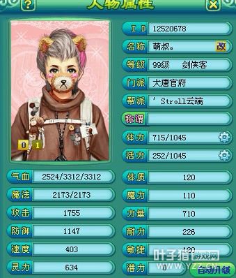 楼主是一个人妖,女孩玩得男号,玩神武数起来也有一年多了,这个属性是没有打符和变身的,个人不怎么会玩,在这些时间里面自然也是发生了许多,因为平时喜欢逛街就不怎么玩,我是在壮志凌云的一个99小DT,别人都叫我柑妹~