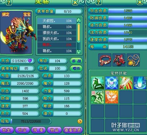 神武浩气冲霄126级狮驼展示:变异宠一堆