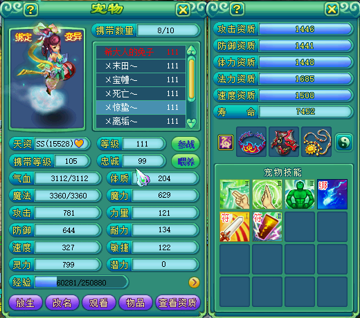 三线属性一线宝宝,神武夫妻双号狮驼+盘丝,大家快来看看吧。