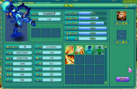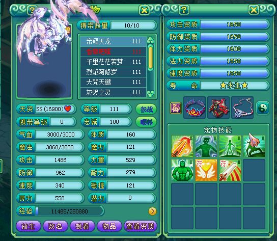 花好月圆106龙宫属性,1264的灵力1400+的防御,而且还自带仙兽翼龙,内丹双饰品,霸气!