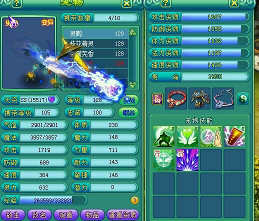 风云再起124级大唐展示,小精灵加变异宝宝,300不能再多了。