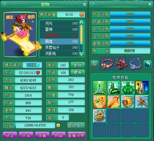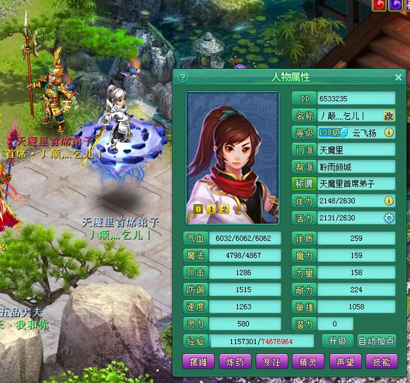 神武2江山如画138天魔展示,门派首席弟子,装备满特技宝宝变异成品高书。
