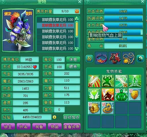 相关资讯: 神武2蓬莱仙境95魔王展示,BB变异,装备聚灵三件套,加上三个强力奶粉。