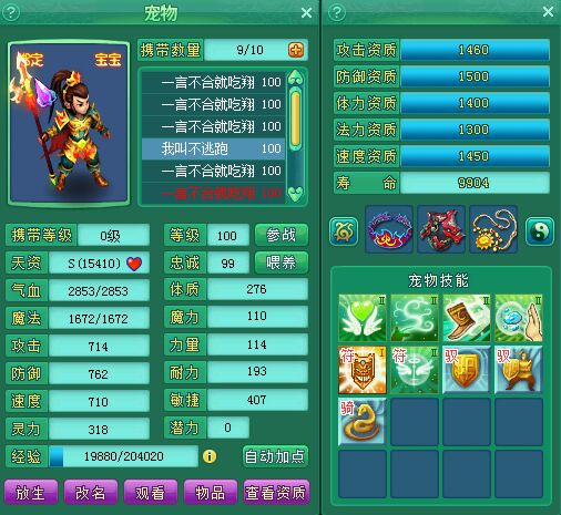 《神武3》物理宠物加点标准(100-119级)